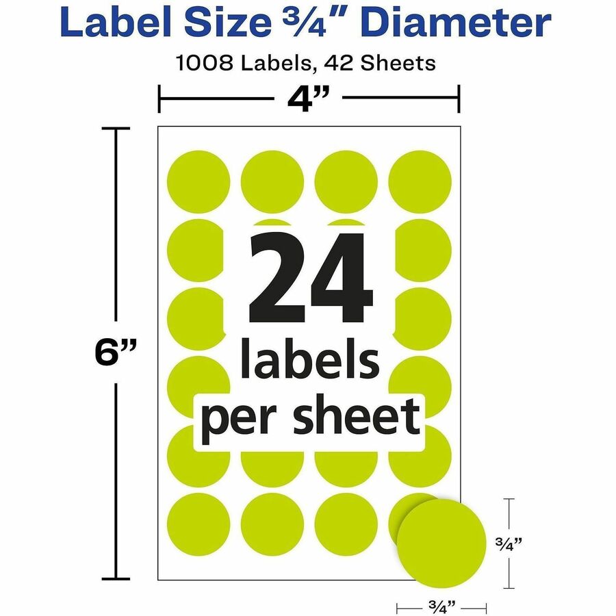 3/4" Diameter - Removable Adhesive - Round - Laser - Neon Yellow - 24 / Sheet - 1008 / Pack