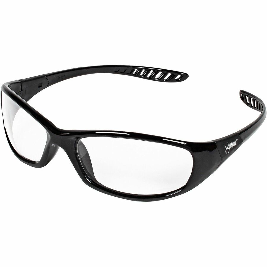 | Marketing Information | V40 Hellraiser Safety Glasses feature sunglass styling with a compact, lightweight design for comfort as stand-alone PPE and when used with other PPE-like face shields and welding hoods. Clear, uncoated lenses allow maximum visible light transmission. They are ideal for indoor use. Lenses feature a hard coating for scratch-resistance and longer life. They are made of a polycarbonate material that provides 99.9 percent UVA/UVB/UVC protection. Flexpoint temples provide comfort and stability. Universal-size glasses with black frame meet ANSI Z87.1+ standards for high impact. |
